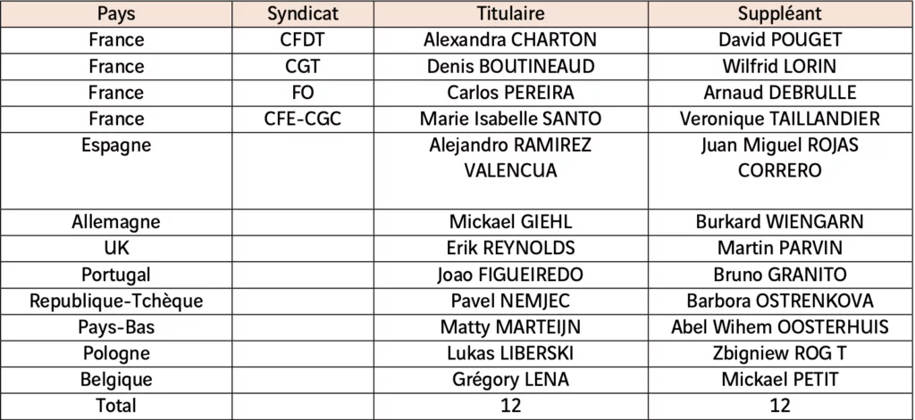 La France est notamment représentée par l’ensemble des organisations syndicales représentatives (CFDT, CGT, FO, CFE-CGC), garantissant un pluralisme syndical essentiel au dialogue social européen.
